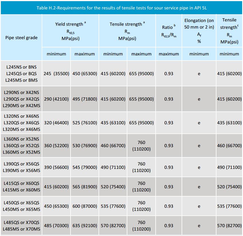 Mechanical Properties for API 5L Sour Service Pipe