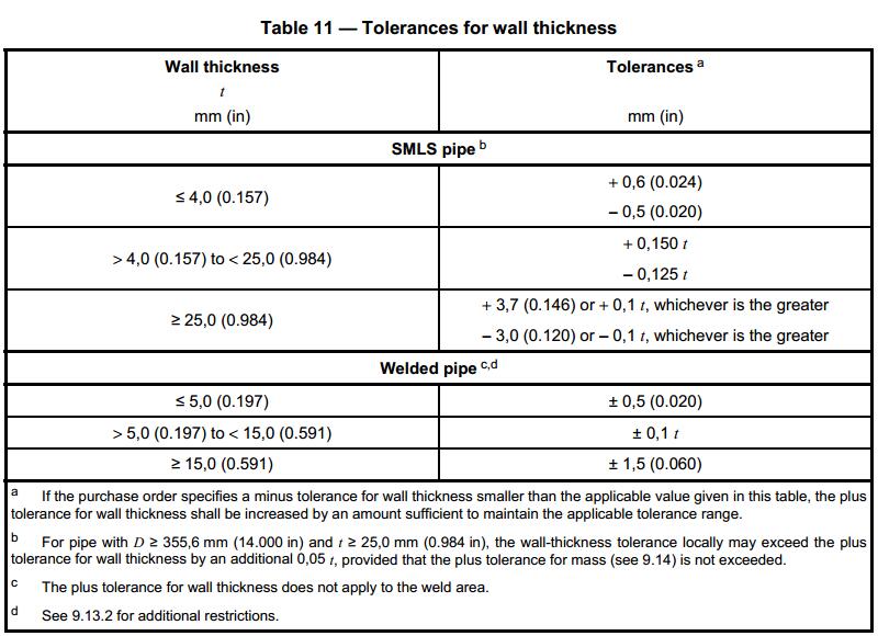 API 5L Pipe Sizes and Tolerances
